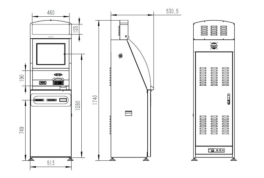 液晶屏(17吋)、觸摸屏(17吋表波)、主控(板載CPU1.8G以上,內存DDR3/2G,500G/SATA/2.5寸,轉速5400轉/秒),16鍵加密不銹鋼金屬小鍵盤,電動讀卡器,訊普熱敏憑條打印機、新北洋針式發(fā)票打印機、工業(yè)級立體音箱、加拿大cashcode原裝紙幣器和鈔箱、沃仕達采集卡、國鼎針孔攝像頭、航嘉ATX電源、易事特UPS電源、尺寸:H1703*D495*W513mm; 重量:95KG。 整機功率:400W |