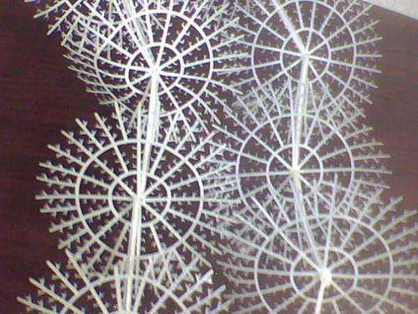 半軟性填料具有散熱性能高,阻力小,布水、布氣性能好,易長膜,又有切泡作用。它所用的材料有聚丙烯、聚乙烯制成。用于污水、廢水處理工程,配套于接觸氧化塔、氧化池氧化槽等設(shè)備。 單元直徑一般有Φ120、Φ150、Φ200,中心繩有塑料繩及纖維繩,規(guī)格可根據(jù)設(shè)計部門及用戶而定。